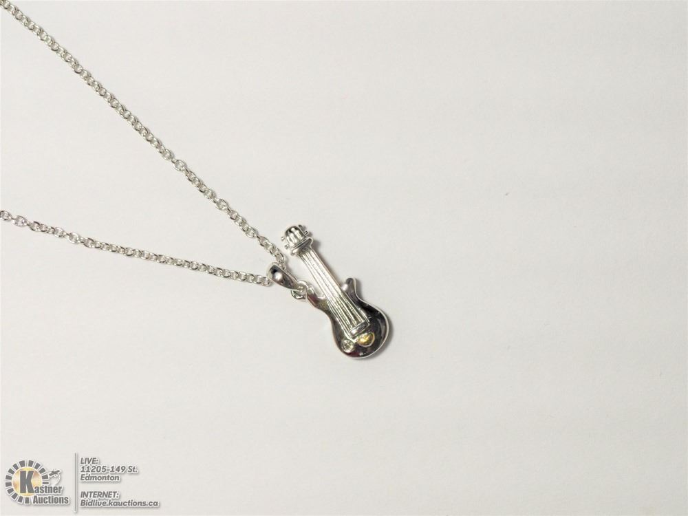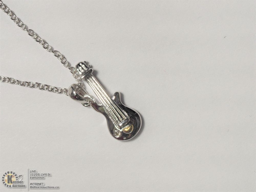 19-JP64 - STERLING SILVER VIOLIN SHAPED PENDANT WITH DIAMOND NECKLACE. JEWELRY.