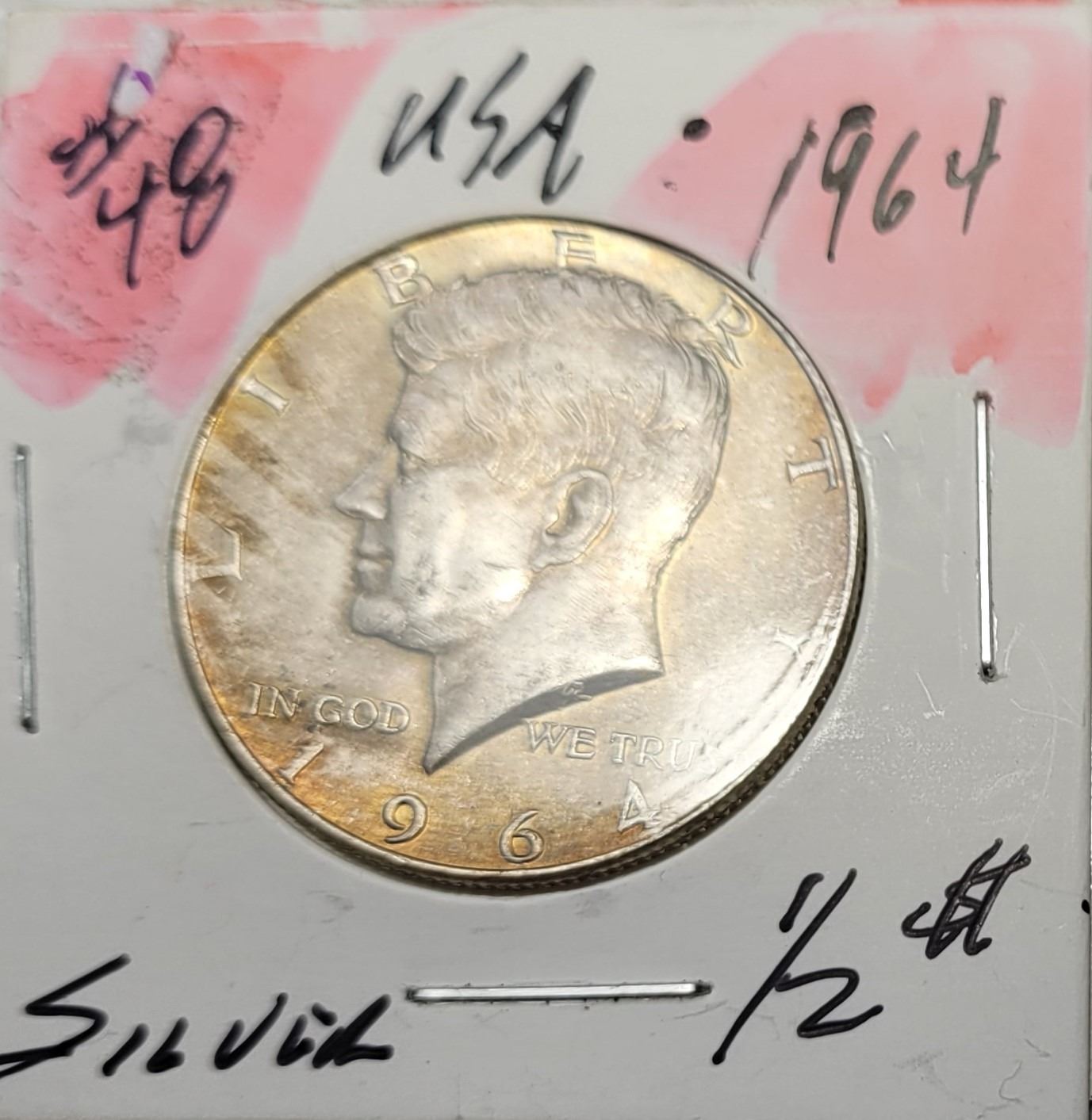 19) USA 1964 KENNEDY 1/2 DOLLAR COIN, 90% SILVER.