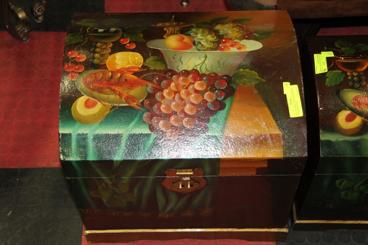 19" X 19" HAND PAINTED WOODEN TREASURE CHEST