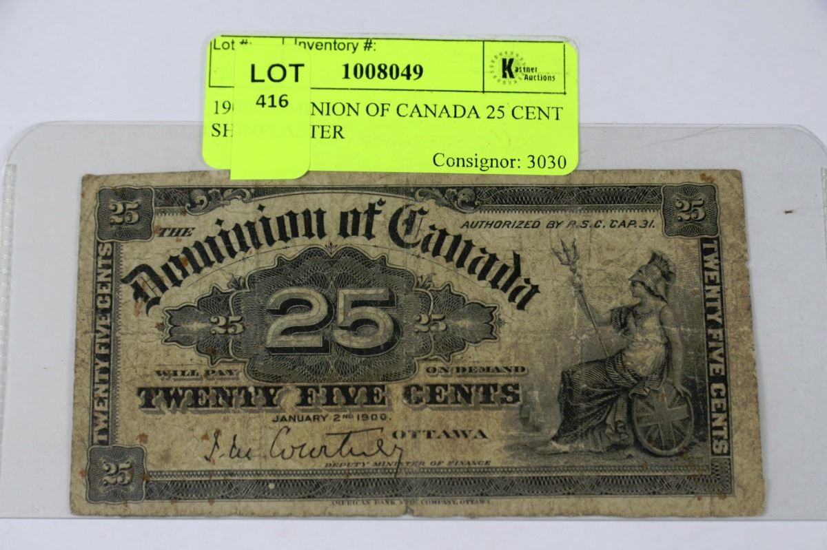 1900 DOMINION OF CANADA 25 CENT SHINPLASTER