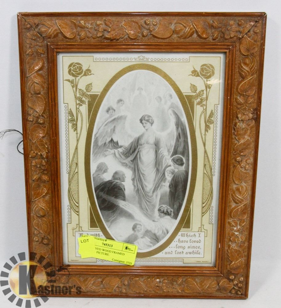 1900S CARVED WOOD FRAMED RELIGIOUS PICTURE.