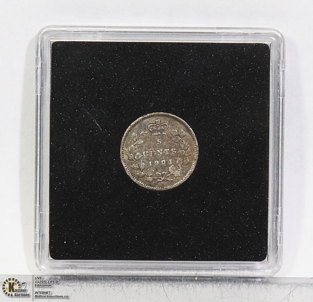 1901 VICTORIAN CANADA SILVER 5 CENT FISHSCALE