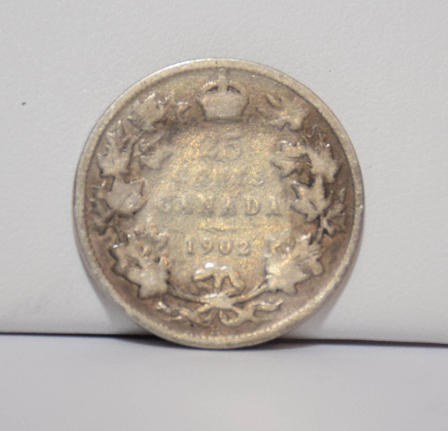 1902H OLD SILVER CANADA 25 CENTS COIN, CIRCULATED