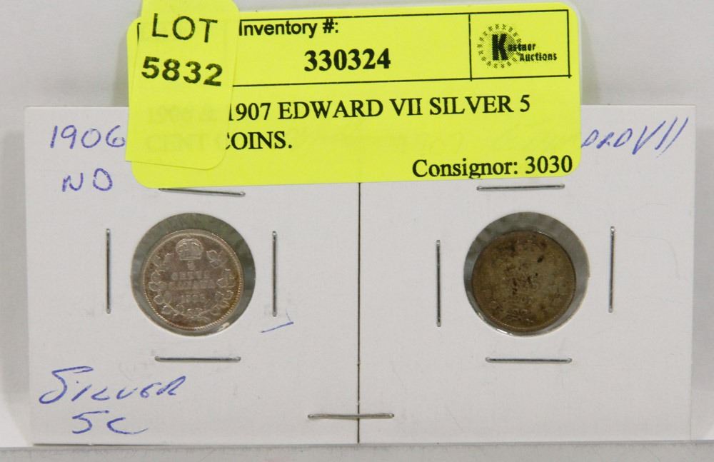 1906 & 1907 EDWARD VII SILVER 5 CENT COINS.