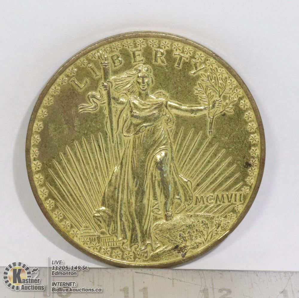 LARGE SOUVENIR MEDAL COMMEMORATING THE 1907 $20 GOLD DOUBLE EAGLE. COLLECTIBLES