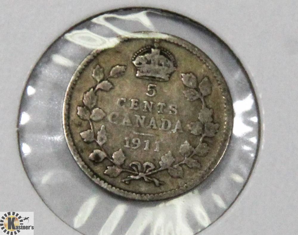1911 CANADIAN SILVER 5 CENT PIECE.