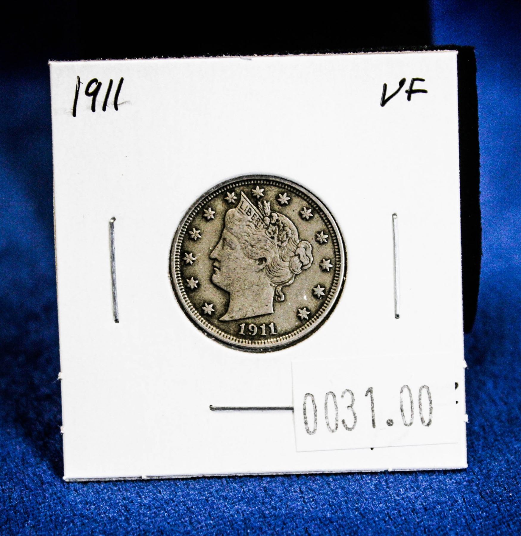 1911 USA LIBERTY HEAD 5 CENT COIN. EXCELLENT CONDI