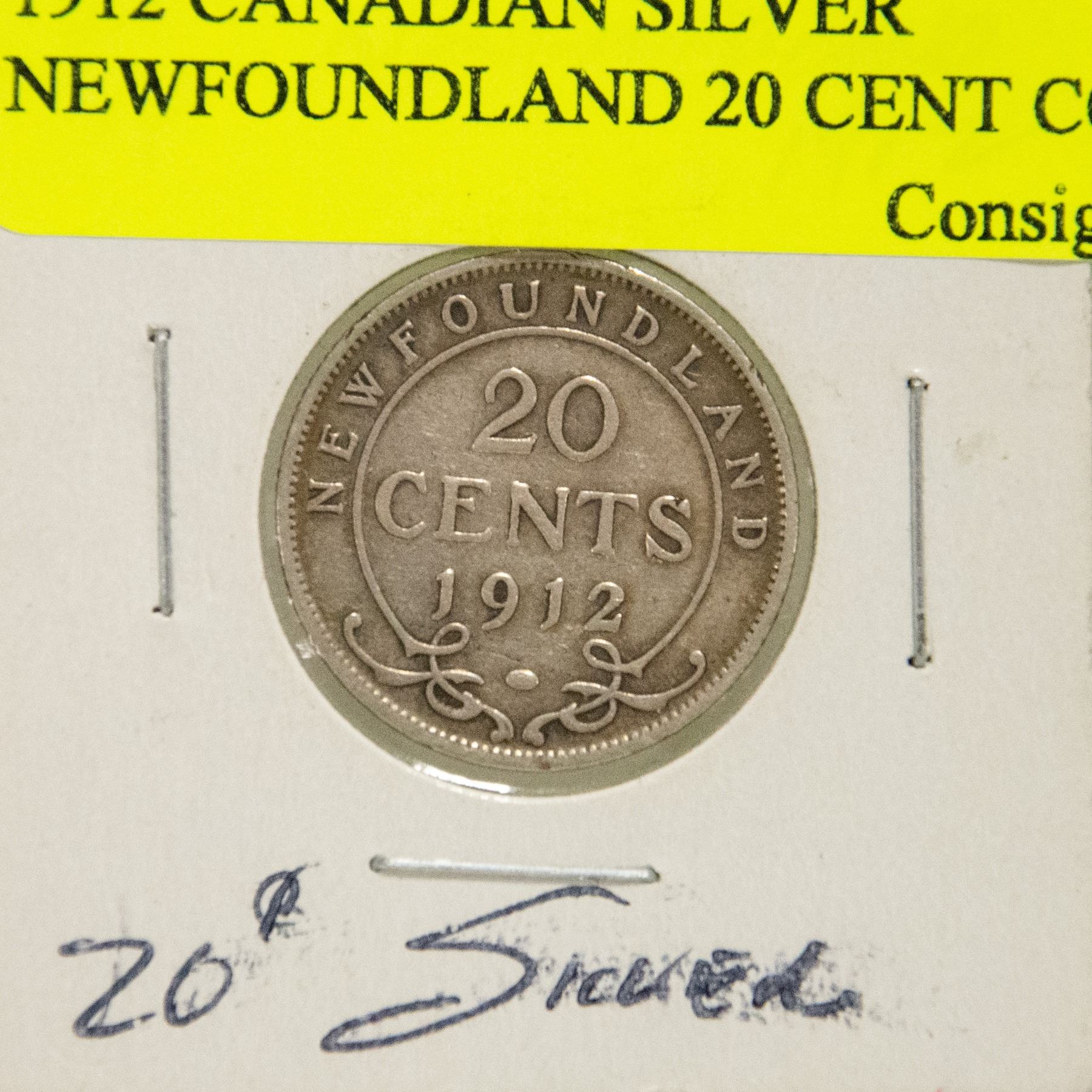 1912 CANADIAN SILVER NEWFOUNDLAND 20 CENT COIN