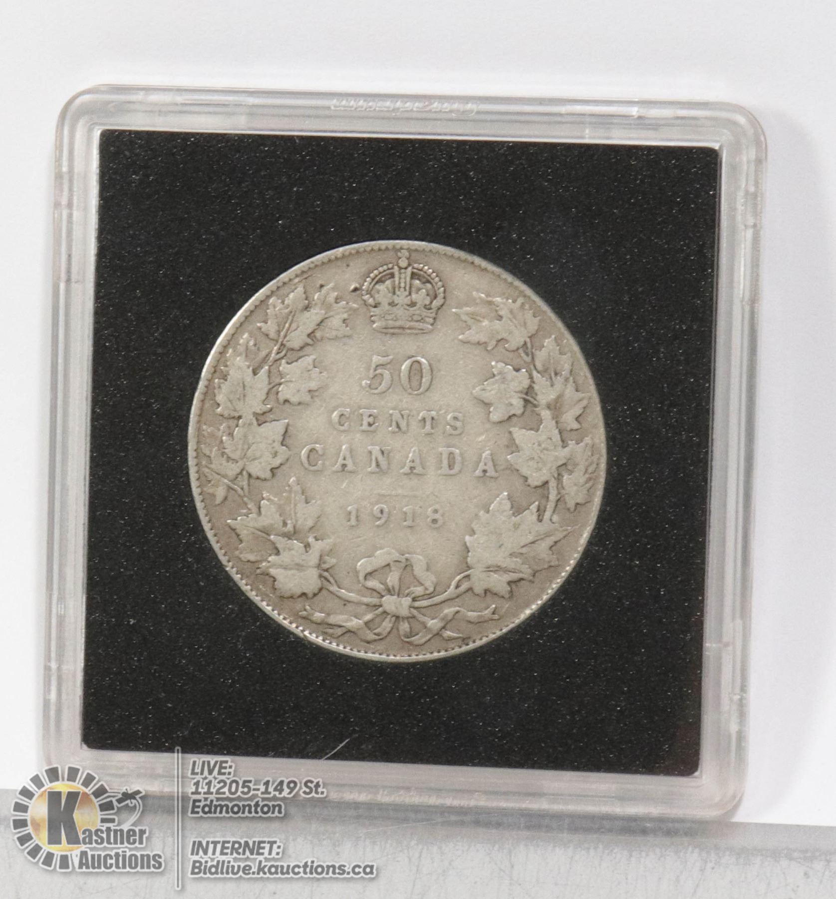 1918 GEORGE V SILVER CANADA 50 CENT CHOICE EXAMPLE OF THIS 1918 GEORGE V SILVER 50 CENT WITH STRONG