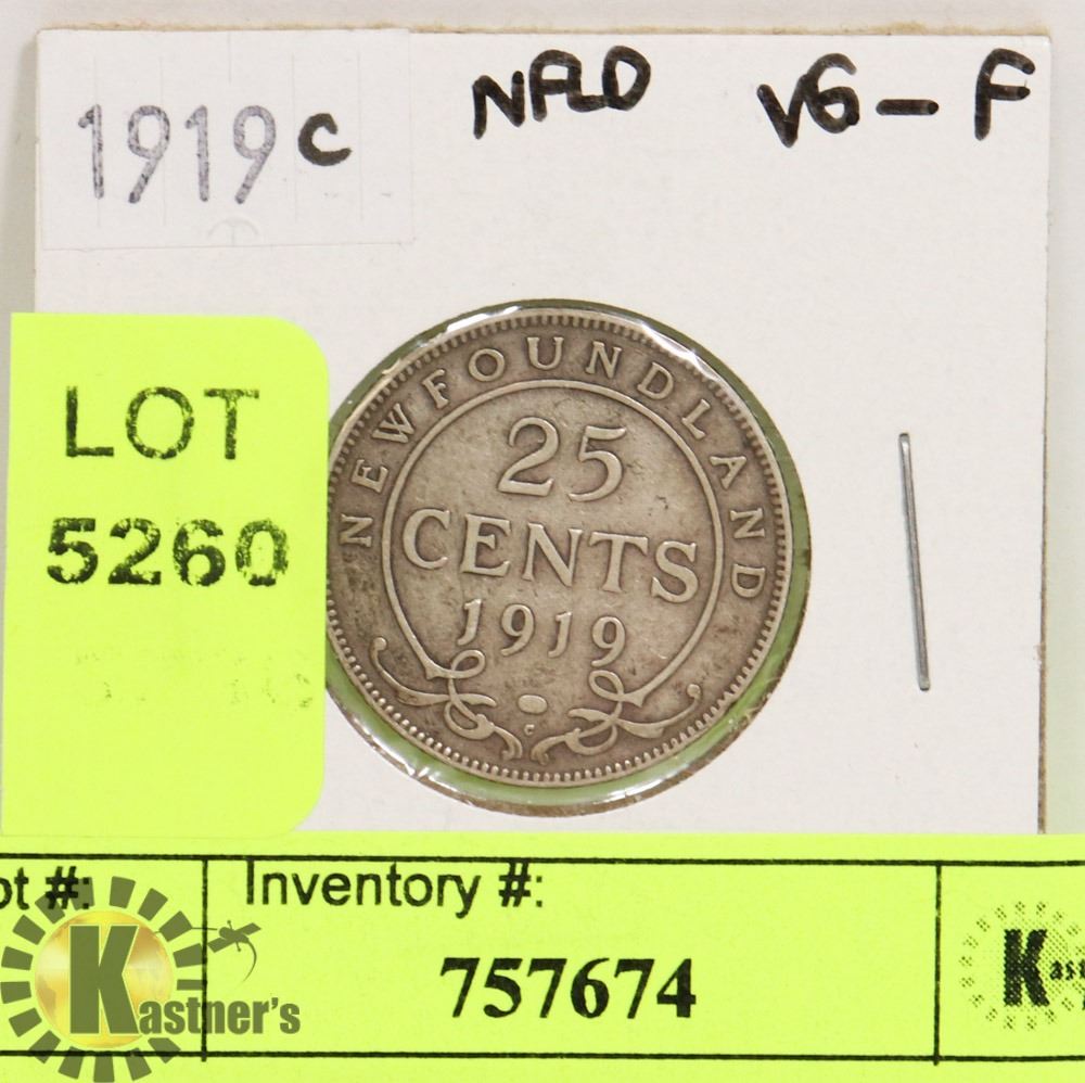 1919 NEWFOUNDLAND SILVER 25 CENT COIN