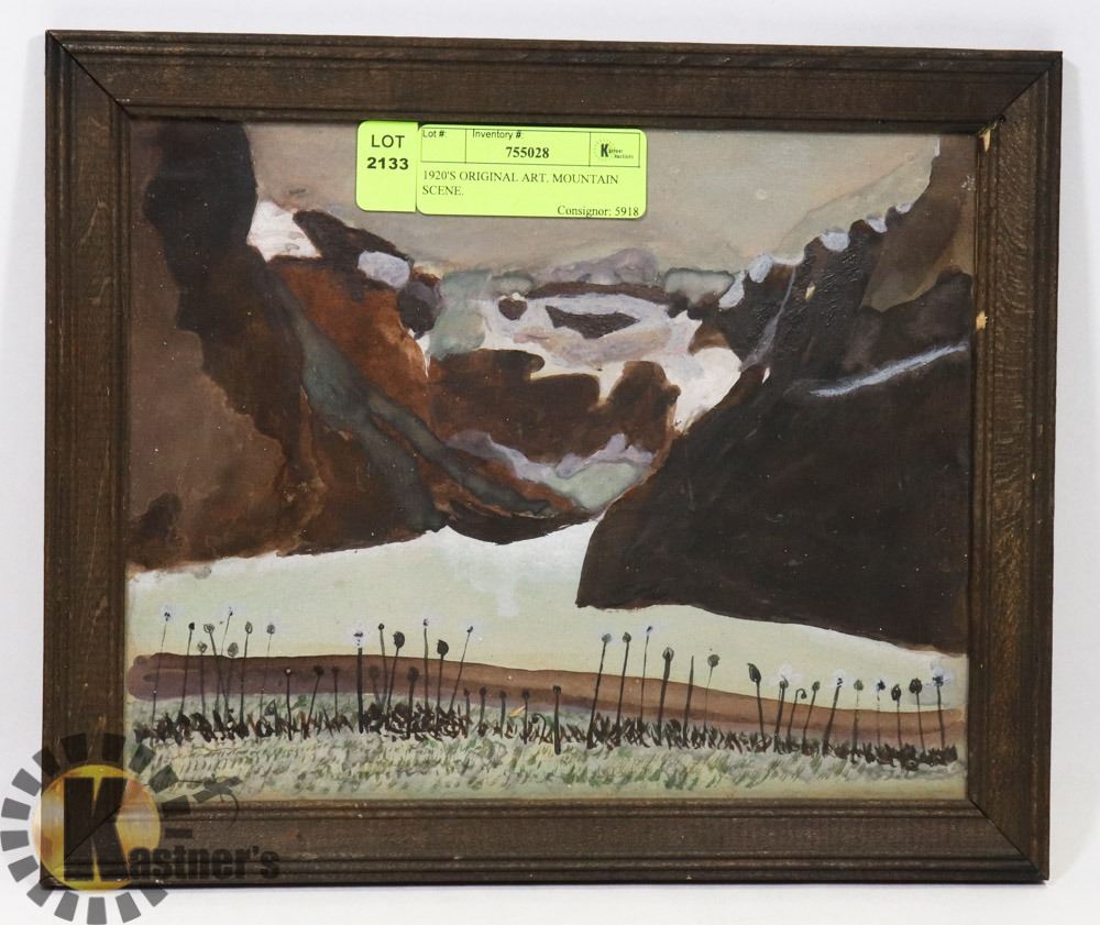 1920'S ORIGINAL ART. MOUNTAIN SCENE.