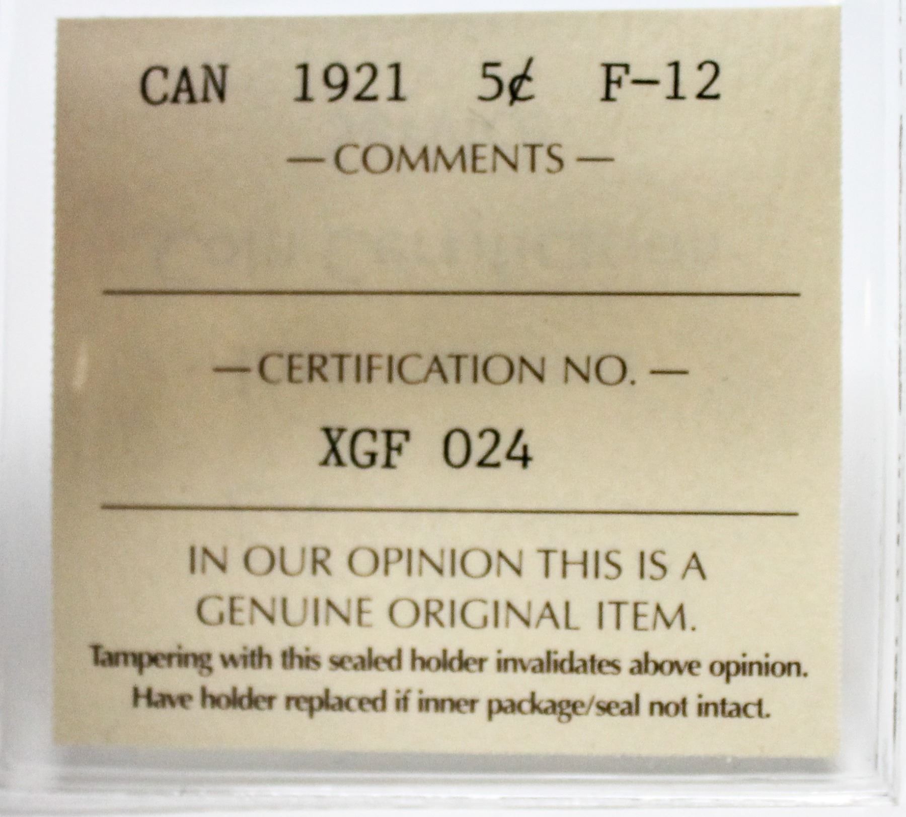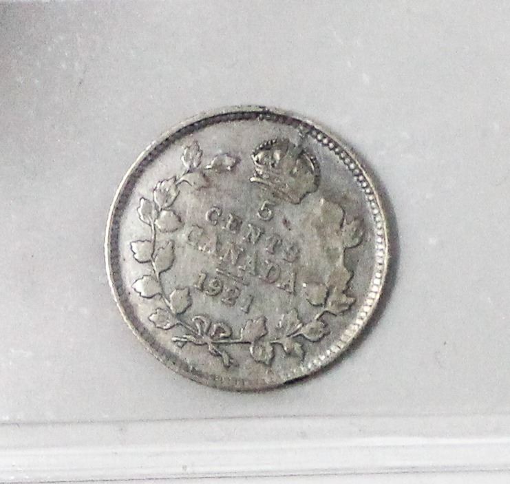 1921 SILVER CANADA 5 CENTS ICCS CERTIFIED