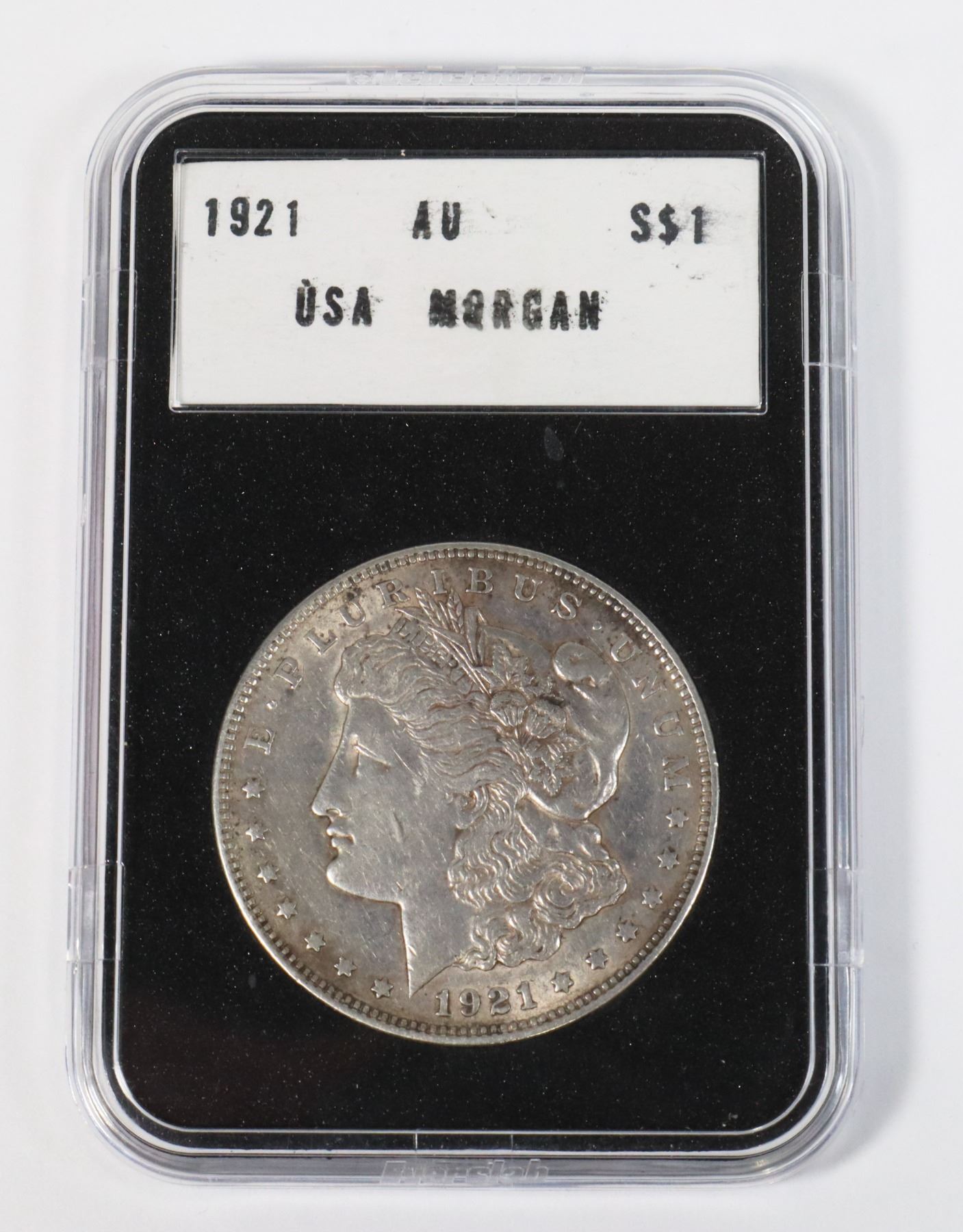 1921 USA SILVER MORGAN DOLLAR IN SLAB -AU