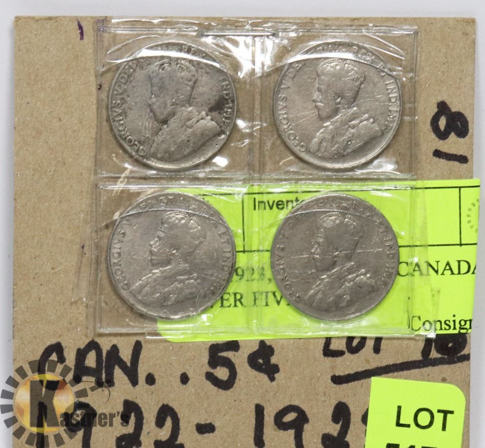 1922, 1923, 1924 & 1927 CANADA SILVER FIVE CENT