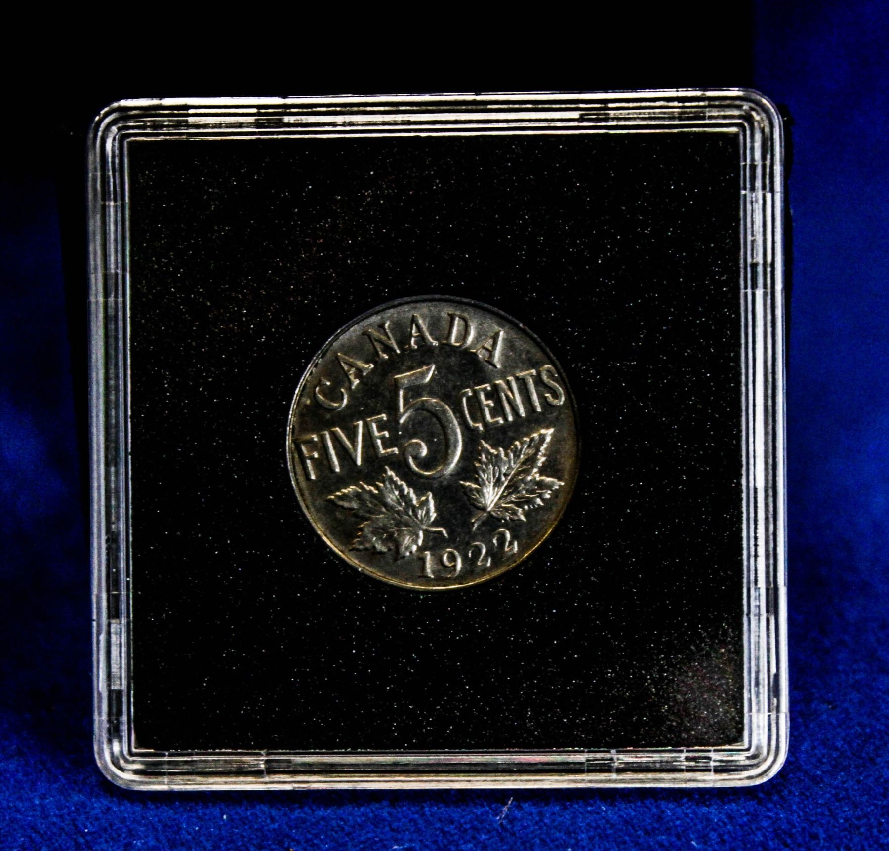 1922 CANADA NICKEL 5 CENT ABOUT UNCIRCULATED