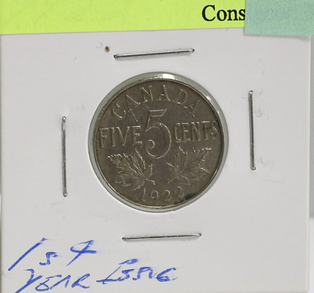 1922 CANADIAN GV 5 CENT COIN 1ST YEAR ISSUED