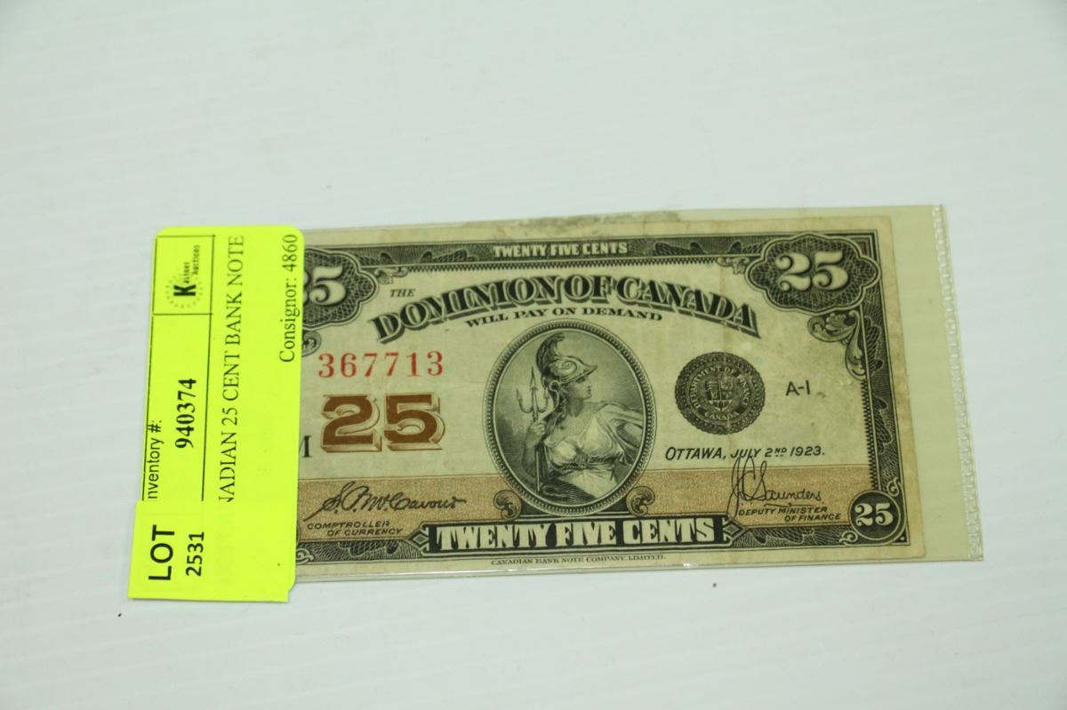 1923 CANADIAN 25 CENT BANK NOTE