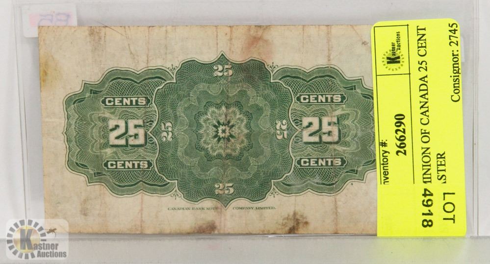 1923 DOMINION OF CANADA 25 CENT SHIN PLASTER