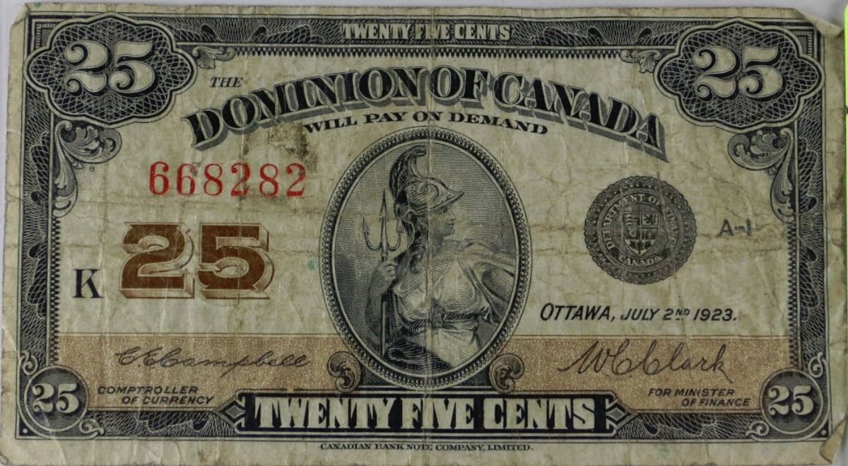 1923 DOMINION OF CANADA 25 CENT SHINPLASTER