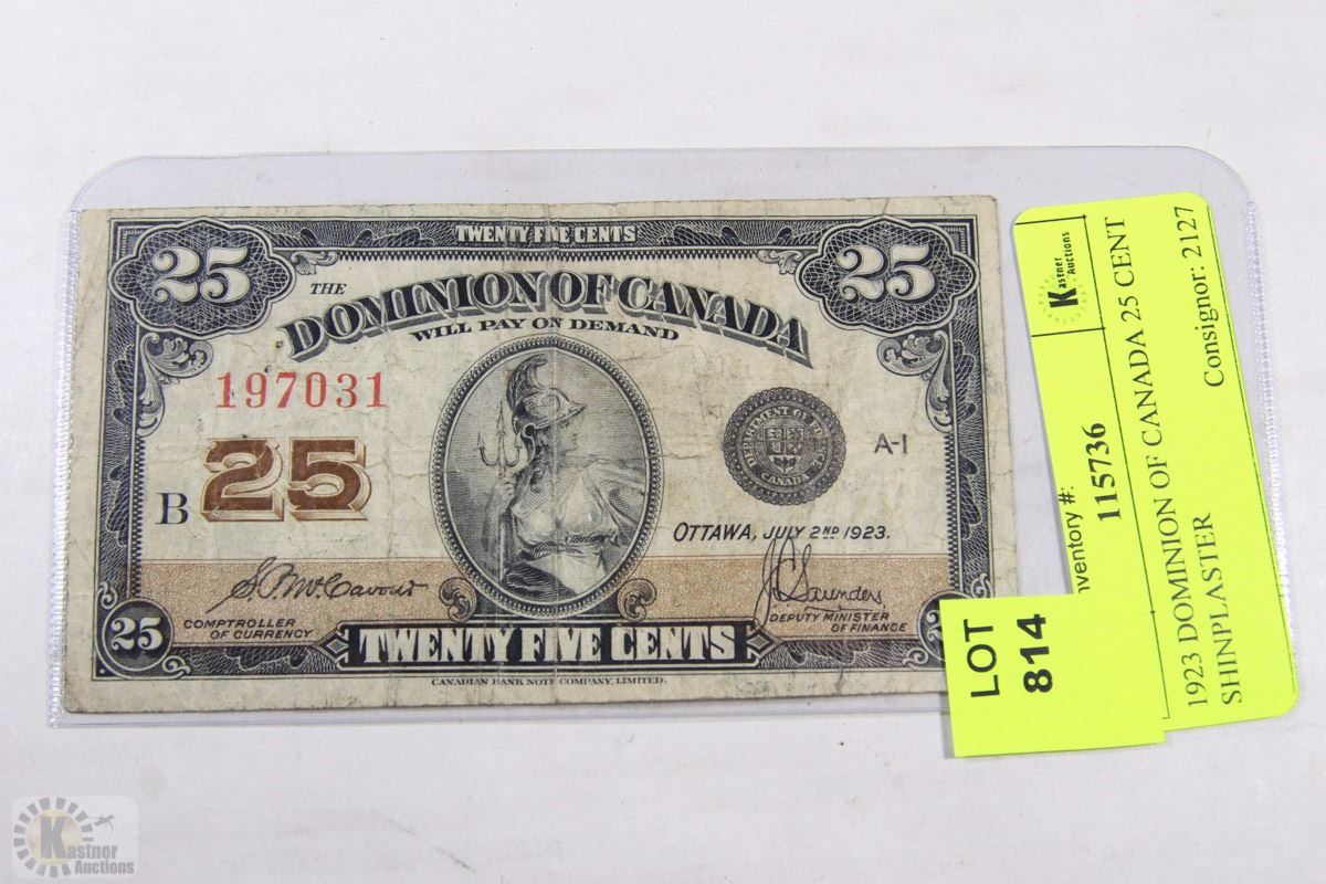 1923 DOMINION OF CANADA 25 CENT SHINPLASTER