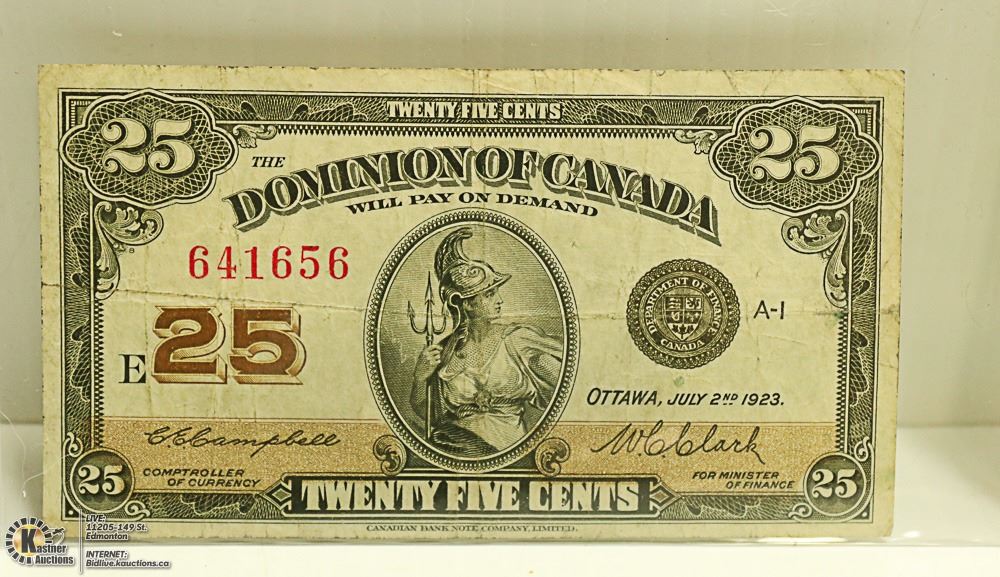 1923 DOMINION OF CANADA 25 CENTS NOTE