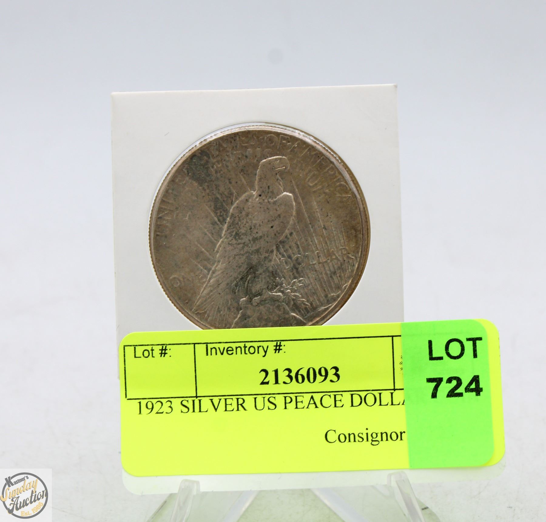 1923 SILVER US PEACE DOLLAR COIN