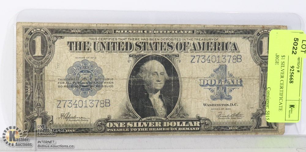 1923 USA $1 SILVER CERTIFICATE NOTE, LARGE