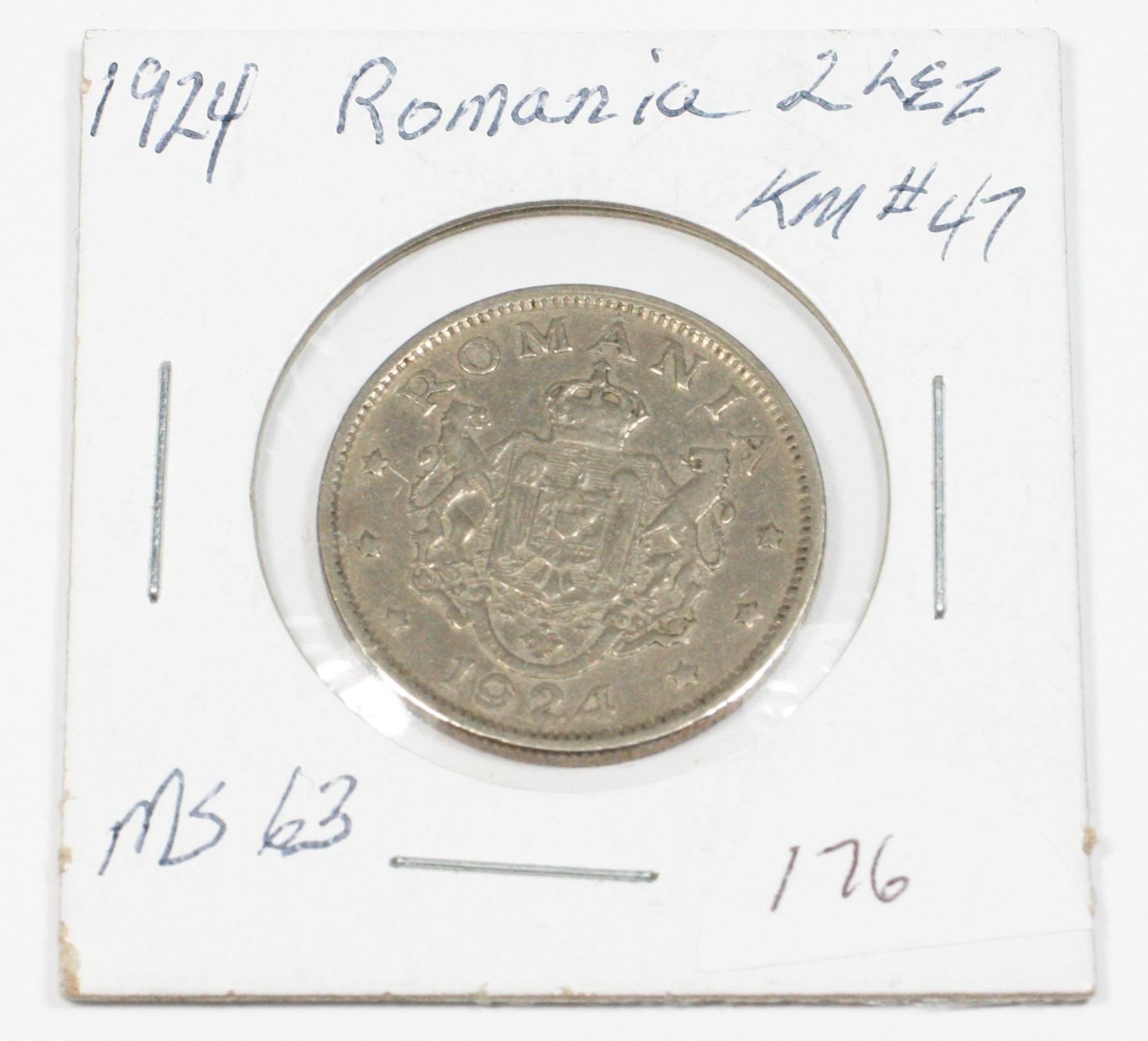1924 ROMANIA 2 LEI KM#47 MS 63