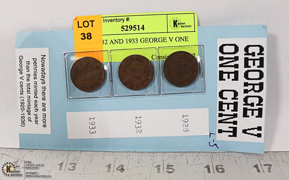 1928, 1932 AND 1933 GEORGE V ONE CENTS
