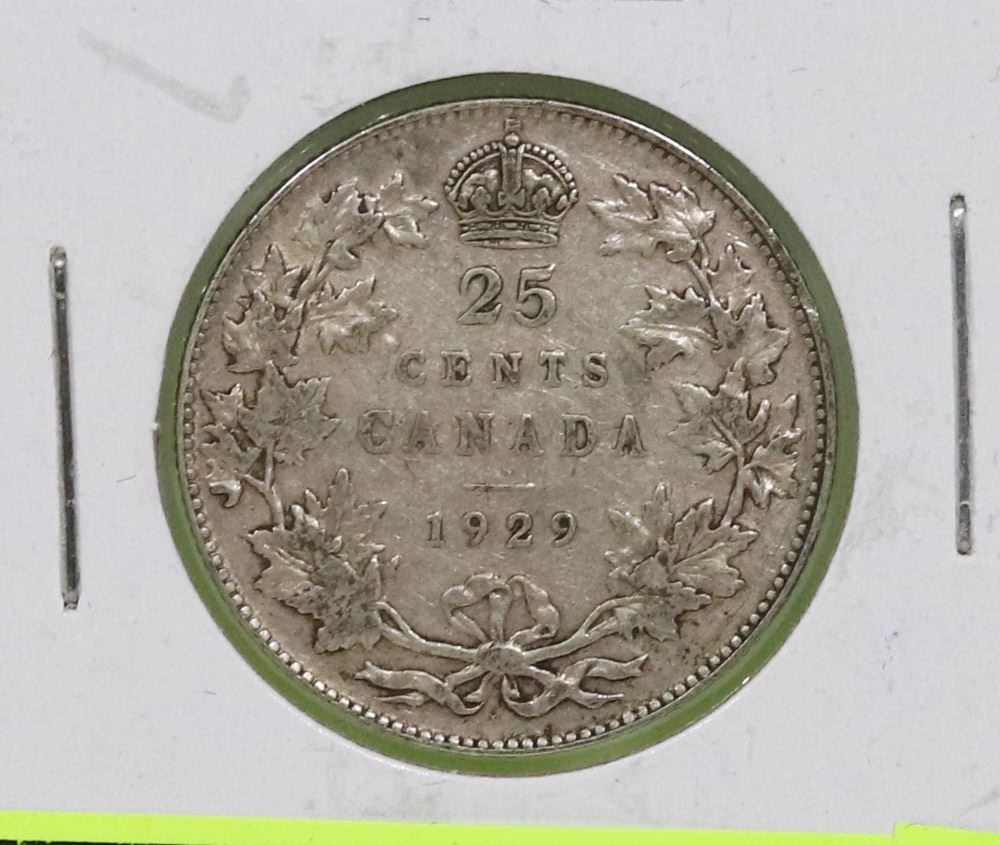 1929 CANADIAN GEORGE V SILVER 25 CENT COIN.