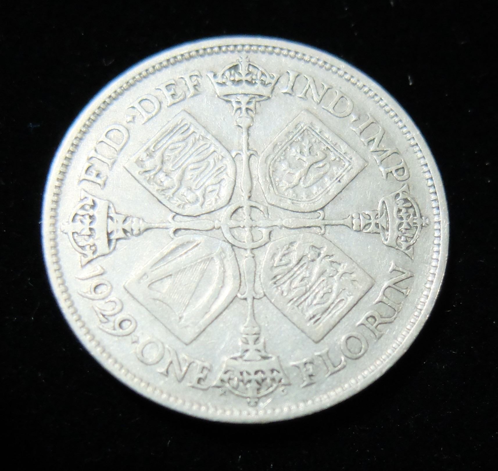 1929 SILVER GREAT BRITAIN ONE FLORIN COIN