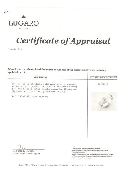 20=.30cts. T.W. ROUND BRILLIANT CUT DIAMONDS, SI CLARITY, G/H COLOR, APPRAISAL, RETAIL VALUE $1,650.00