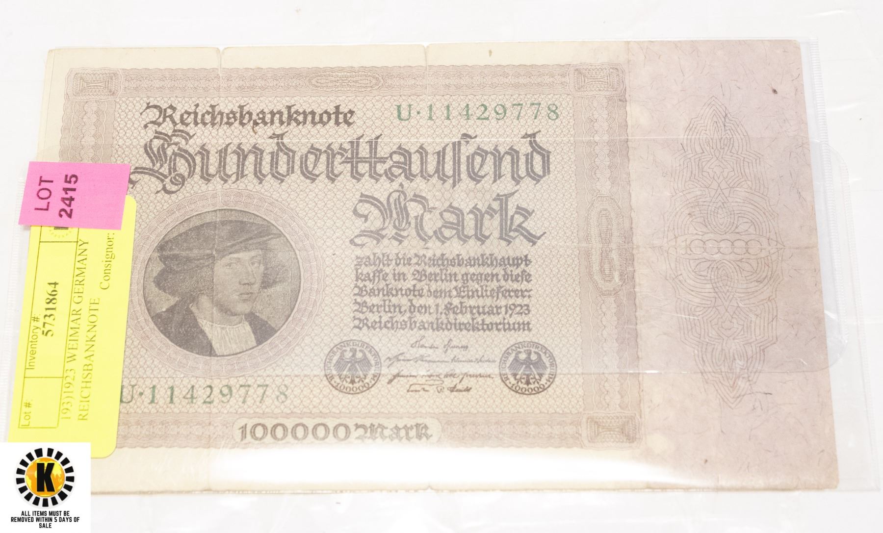It is the sole responsibility of the purchaser to remove their items within the prescribed time. Kastner Auctions Ltd will NOT provide any delivery or transport of any nature for live auction items.