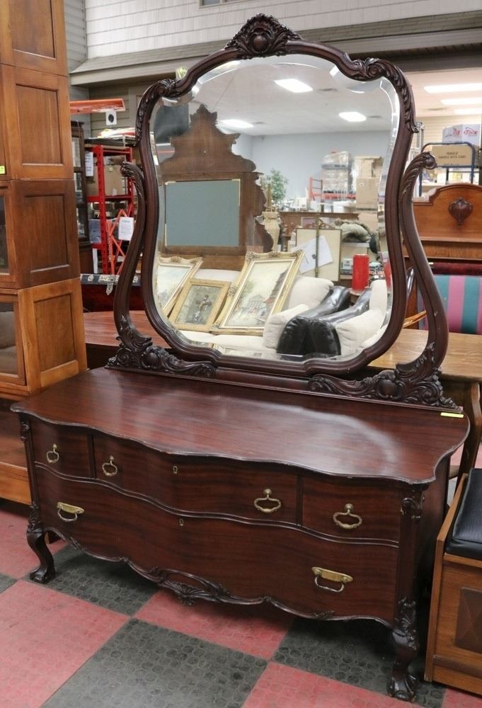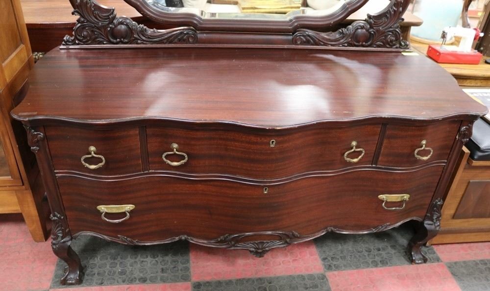 WITH CLAW FEET. DRESSER IS 56.5"X22.5"X26", MIRROR IS 48"X48"