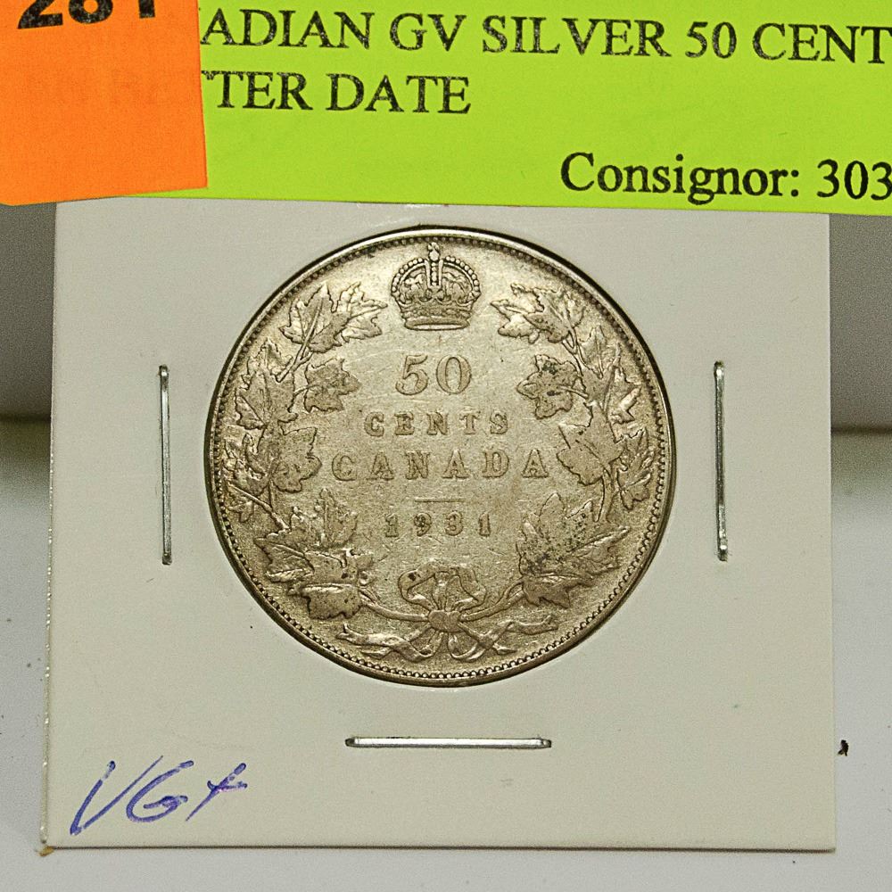 1931 CANADIAN GV SILVER 50 CENT COIN BETTER DATE
