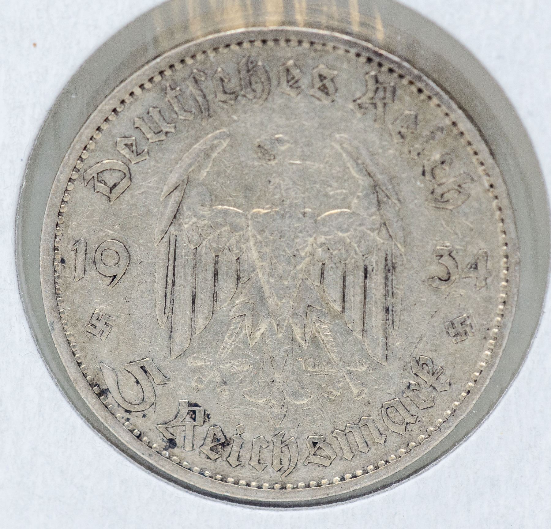 1934 SILVER WWII NAZI GERMANY 5 REICHSMARK COIN