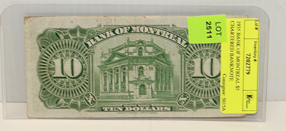 1935 BANK OF MONTREAL $5 CHARTERED BANKNOTE