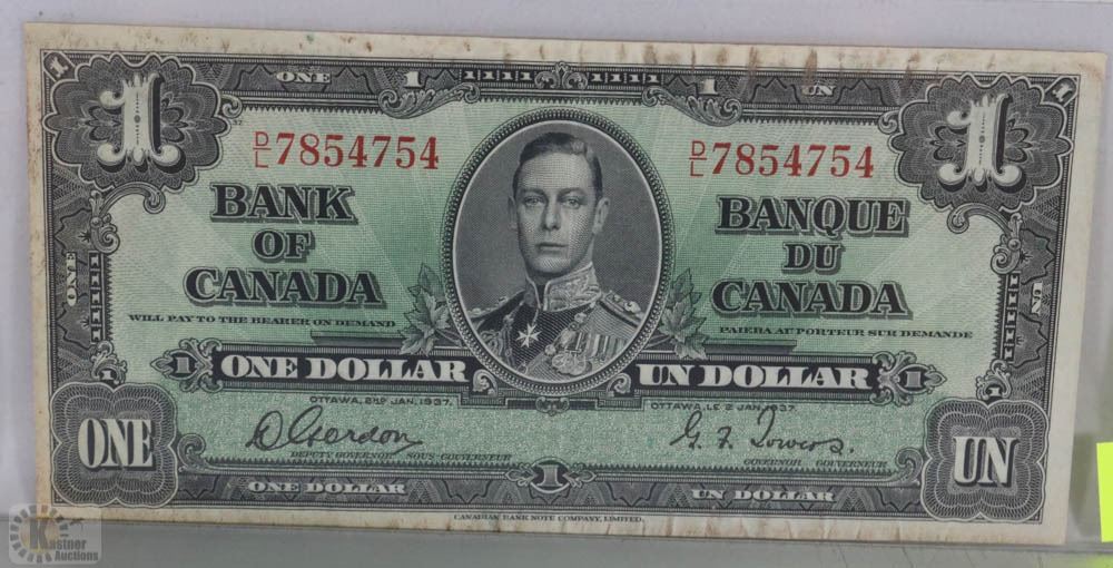 1937 $1 BANK OF CANADA NOTE GORDON TOWERS