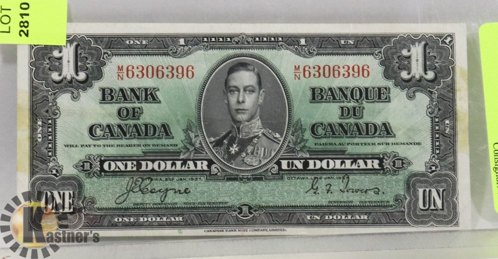 1937 CANADIAN $1.00 BANKNOTE.