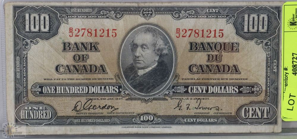 1937 CANADIAN $100.00 BILL