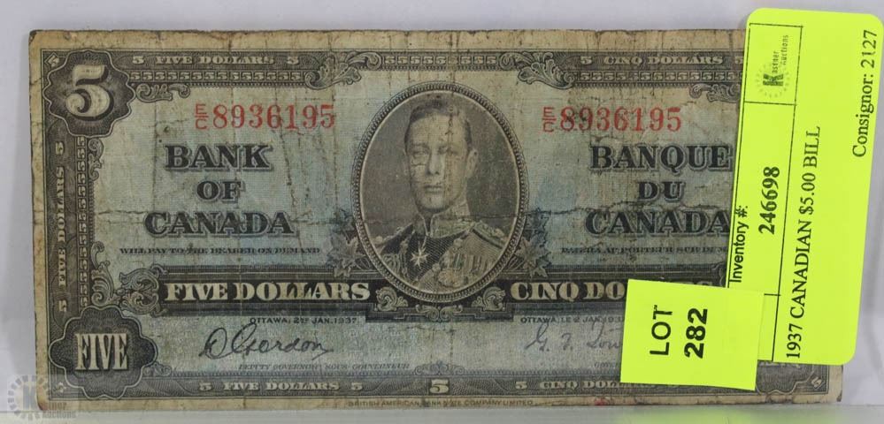 1937 CANADIAN $5.00 BILL