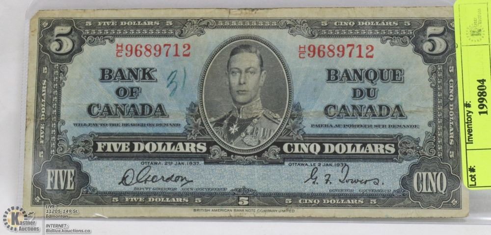 1937 CANADIAN $5.00 BILL