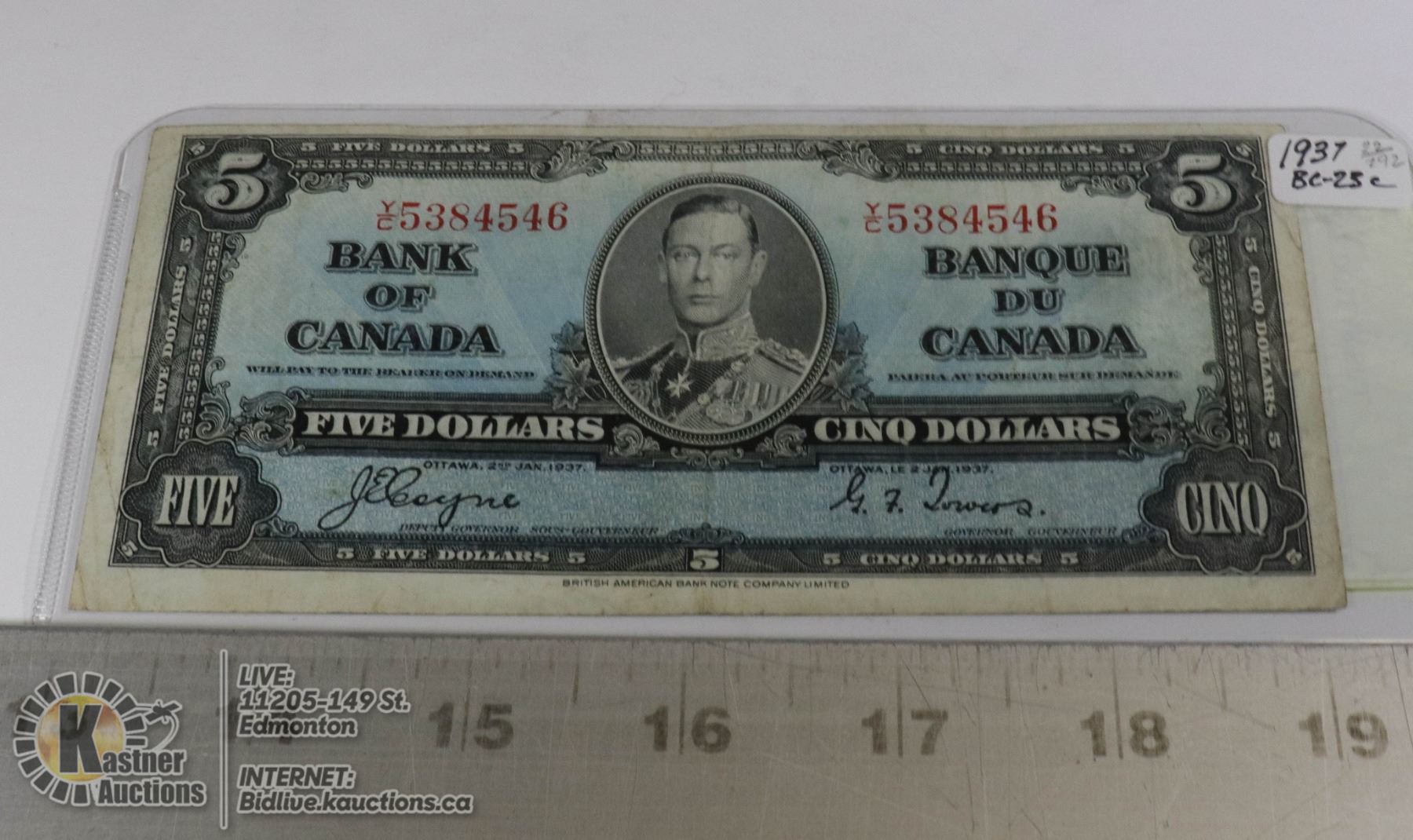 1937 CANADIAN FIVE DOLLAR BILL COINS & CURRENCY