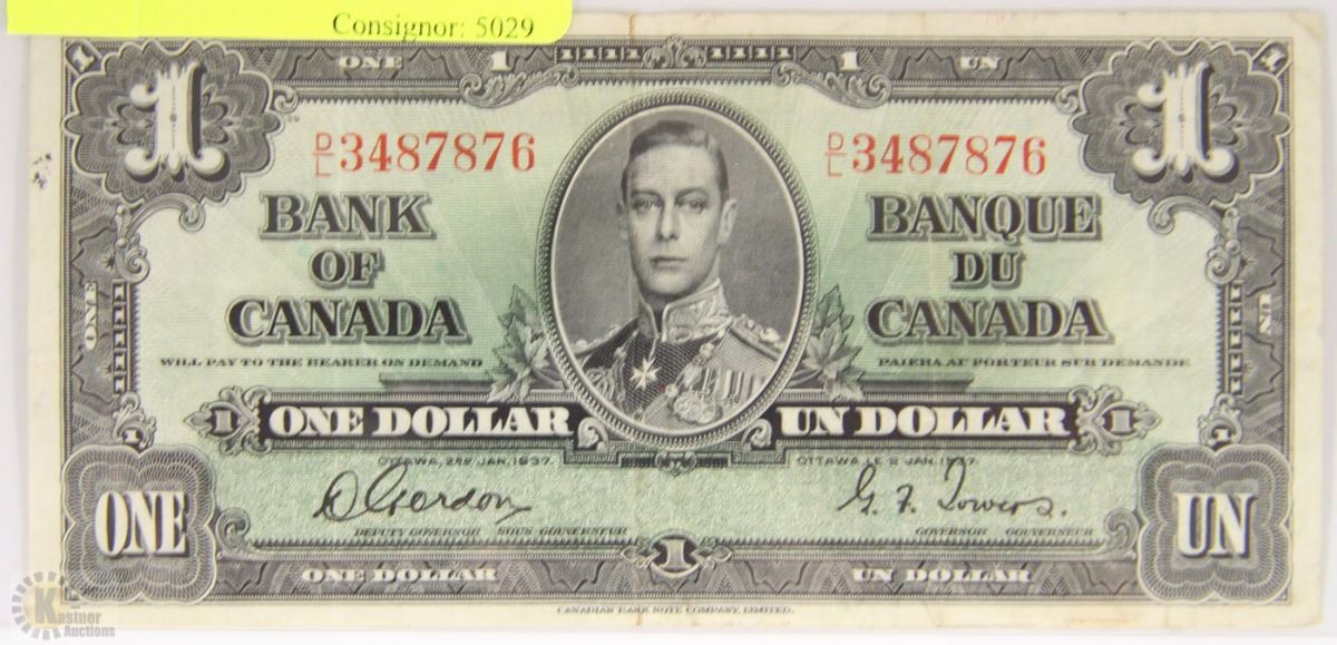 1937 CANADIAN ONE DOLLAR BANKNOTE