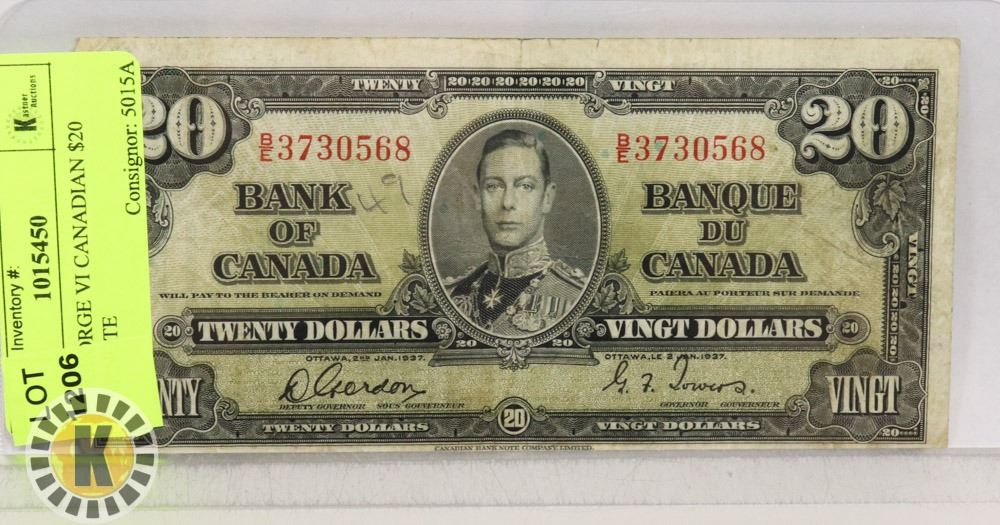 NICE CONDITION 1937 ISSUE $20 BANKNOTE WITH GORDON/TOWERS SIGNATURES PREFIX B/E***ITEM IS LOCATED IN LETHBRIDGE ALBERTA, PICKUP IS AT OUR LETHBRIDGE LOCATION ONLY, WORLDWIDE SHIPPING IS AVAILABLE***