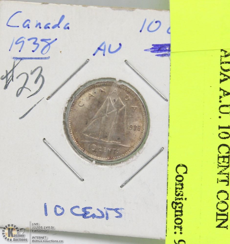 1938 CANADA A.U. 10 CENT COIN