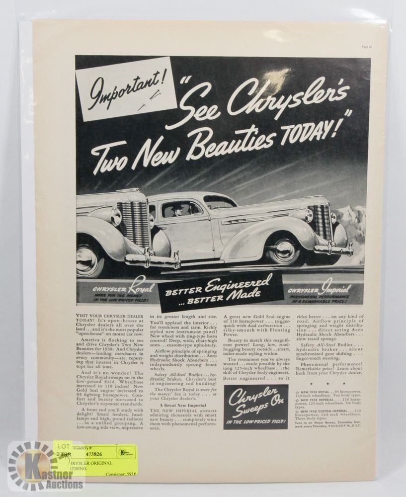1938 CHRYSLER ORIGINAL ADVERTISING.
