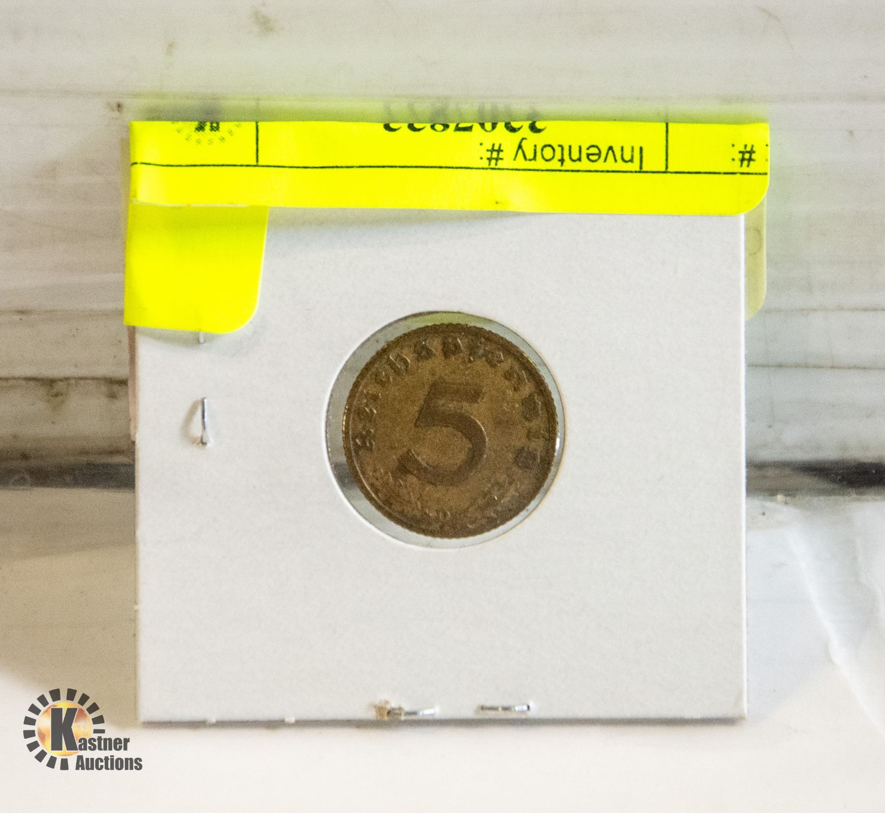 1938 NAZI 5 REICHSPFENNIG "D" COIN GERMANY