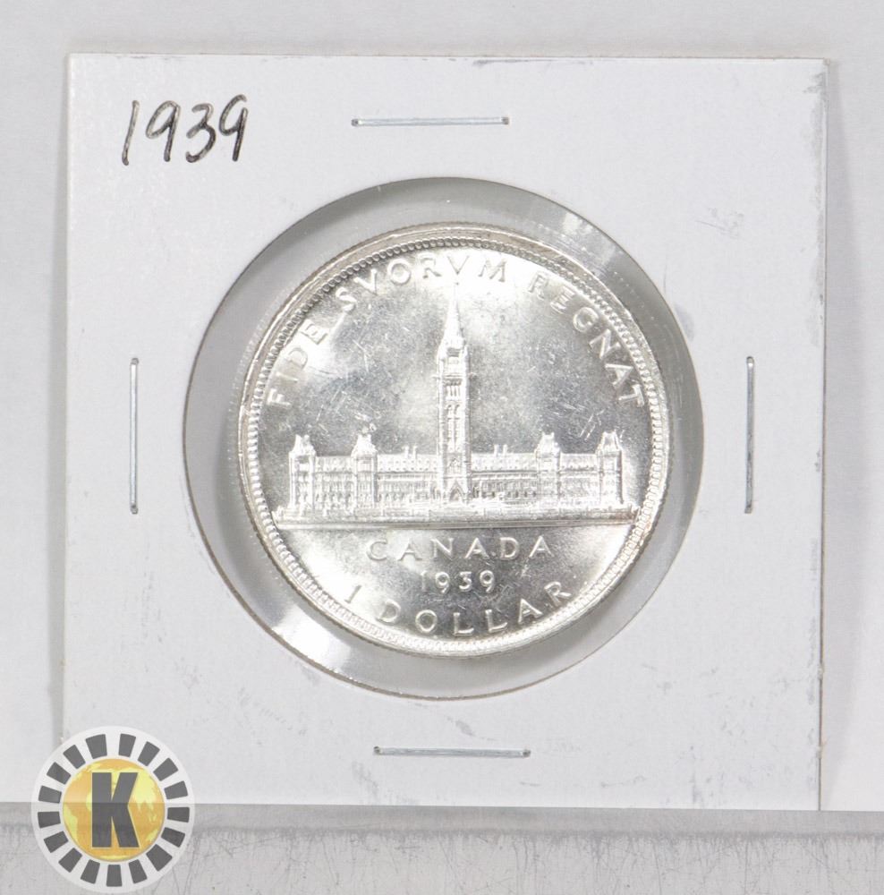 1939 CANADA 80% SILVER $1 DOLLAR COIN
