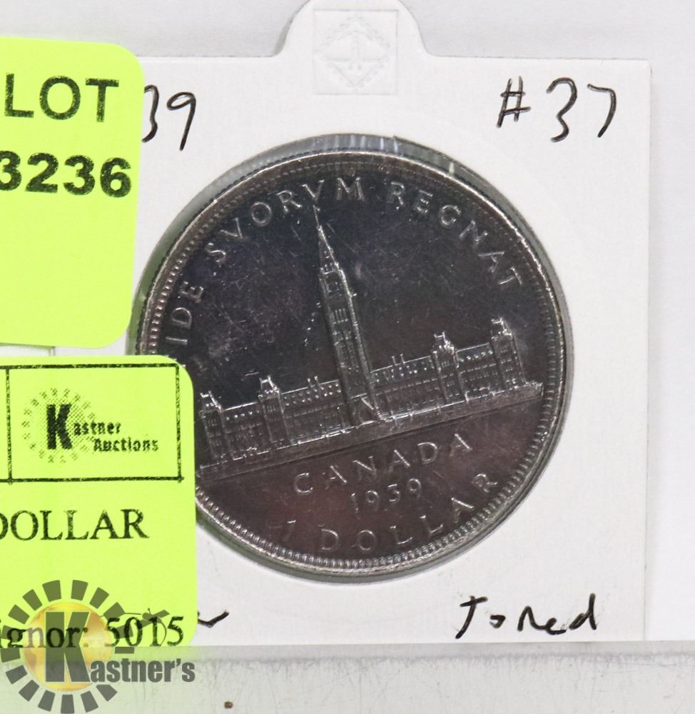 1939 SILVER CANADIAN $1 DOLLAR COIN, TONED.